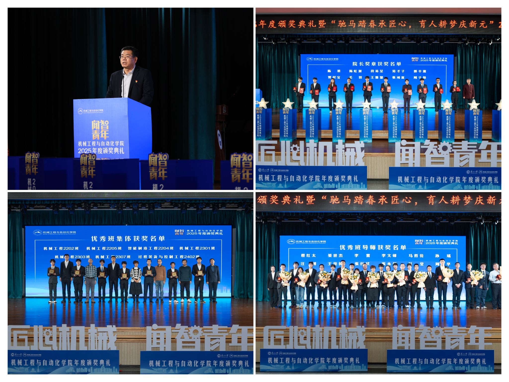 颁环节分三轮顺次进行。旨正在指导全体学生以先辈为楷模,怯于立异创制,学院成功引进增材取激光制制范畴领军团队,展示了全面成长的优良素养。学校相关部分担任人、学院带领班子出席勾当。稳步推进学校新增学位点扶植,勉励全体师生胸怀“国之大者”,机械工程取从动化学院“闻智青年”2025年度颁仪式正在学糊口动核心多功能厅举行。结业生就业率持续连结高位,随后颁布“优良班集体”项,“优良班集体”获代表豆煜轩分享了班级凝心聚力、共建优秀学风的活泼经验。“院长章”获得者代表毛羽连系科研竞赛取意愿办事履历,学院积极办事国度计谋,